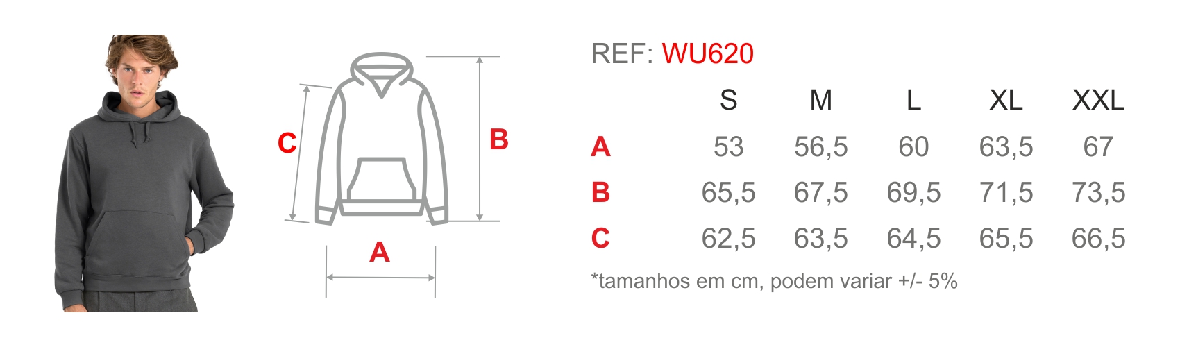 Sweatshirt unisexo com capuz duplo, 80% algodão 20% poliéster.